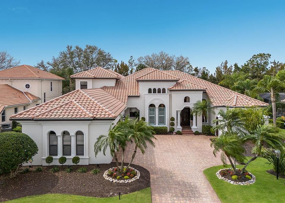 The ultimate tropical oasis setting, this elegantly appointed two-story residence in Lakewood Ranch Country Club exudes a swoon-worthy and private resort feel . The expanded Ballina by John Cannon Homes encompasses 4,487 square feet of generously proportioned living spaces, soaring ceilings, architectural detailing, just PAINTED INSIDE and OUT, and an an expansive outdoor retreat with extensive open and under cover spaces, full summer kitchen with new 2024 grill, heated pool/spa and updated landscaping. Live and entertain flawlessly in this two-story just painted and impeccably maintained and updated throughout exuding a classic elegance where there is no shortage of living well. Beyond the hurricane impact iron entry doors reveals the grandly-sized living room with floor-to-ceiling aquarium windows just off the formal dining area juxtapose a wet bar with NEW thermostat controlled GE Monogram WINE REFRIGERATOR, sink, stone counters and wood cabinetry. Meanwhile the epicenter of the home is the family gathering room boasting a gas fireplace and disappearing cornerless sliding glass walls that brings the outdoor living area in seamlessly incorporating the breakfast area and gourmand’s well-appointed kitchen with All NEW 2024 GE MONOGRAM APPLIANCES, wood cabinetry, ample granite and quartz counters, and an oversized walk-in pantry. The residence also features a designated office on the main level that offers built-in bookshelves, soaring ceilings and wood flooring. Relax and unwind in the elegant owner’s retreat positioned on its own private wing on the main level with direct lanai access, elevated sitting area, two customized walk-in closets, and a luxuriously appointed spa-like bath with separate vanity stations, dual entry shower, and a separate soaking tub. Guests will appreciate two generous suites on the main level, each with access to their own full bath and walk-in closets. The home’s fourth guest suite and fourth full bath resides on the upper level, as does the expansive bonus room with screened terrace with all new aluminum railings and screens. This bonus room offers flexible living options as a theater, game room, secondary office or potential 5th guest suite. Positioned within the luxury enclave of Legends Walk, there are numerous appointments that highlight this magnificent Country Club residence, some of which include newly installed AC units in 2021, impact double iron front doors in 2022, hot water heater in 2021, new pool heater in 2023, Sonos sound system inside and outside updated in 2022, landscape lighting updated in 2021, refurbished sprinkler system in 2022, laundry room with ample cabinetry, sink and newer washer/dryer, interior paint completed in 2024, exterior painted in 2024, and a courtyard side-load 3 car garage with Garage Tek storage cabinets, and epoxy flooring in 2024. Non-mandatory membership opportunities to become a member of Lakewood Ranch Golf & Country Club are possible, which includes a state-of-the-art Fitness center, Clubhouses, junior Olympic-sized pool, four 18-hole championship golf courses, Tennis, Pickleball and more. Lakewood Ranch is the #1 top-selling master-planned community in the country with shopping, dining, A-rated schools, and, of course, Sarasota’s renowned beaches.