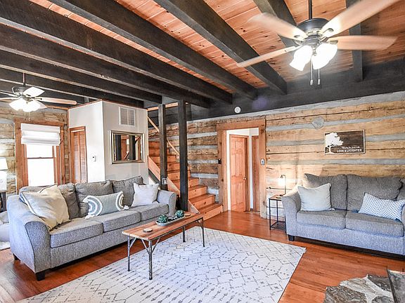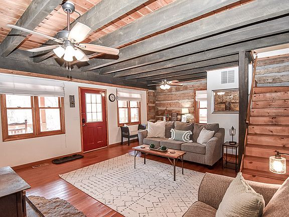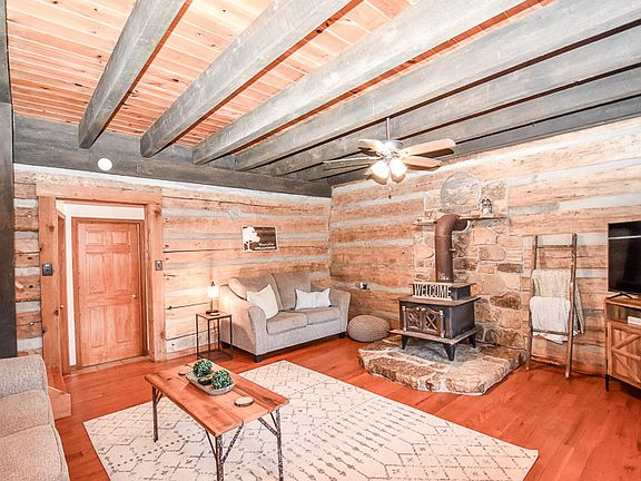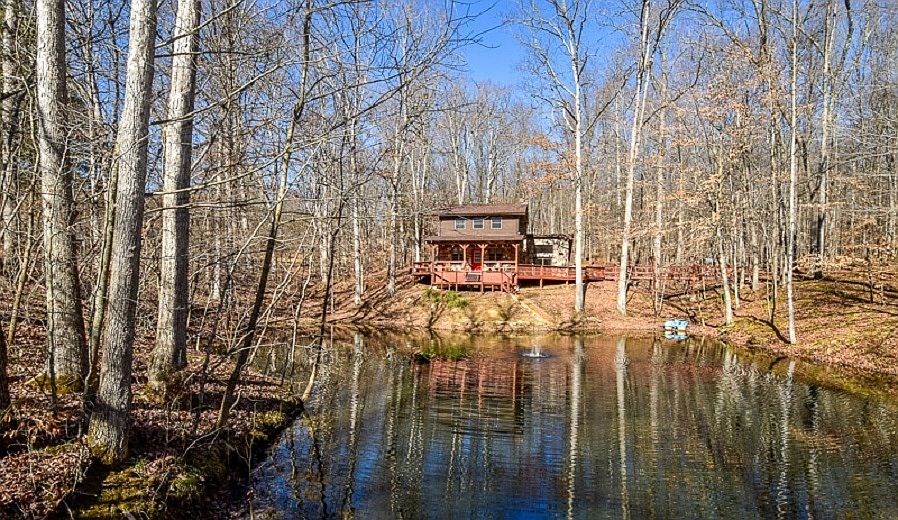This exceptional property offers a beautifully renovated antique log cabin overlooking a serene pond on a private 3.07-acre wooded retreat.Ideal as a year-round residence, a vacation home, or the very successful Airbnb that it currently is. Gross rents for 2023 were $48,000. The cabin,originally built in the 1800s, was moved from Spencer in 1986. Features: a rustic, vaulted tongue & groove oak ceiling, exposed beams, a wood-burning stove w/a Brown County stone hearth, an eat-in kitchen, and a Culligan reverse-osmosis filtration system. The large windows & skylight bring in natural light & offer stunning nature views. The wrap-around deck provides a great space to relax. Lake Monroe & Pine Grove Boat Ramp are at the end of the lane. Beaches, jet ski rentals, and picnic spots are available at the nearby Paynetown State Park. The property includes a detached, insulated 2-car garage w/roof pulleys for 2 kayaks, a circular drive, and extra parking space for boats & vehicles. Additional IRMLS #202404921 & 202404924.