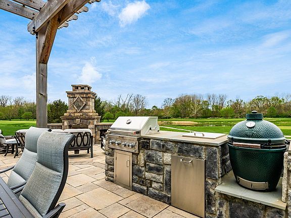 WHY WAIT TO BUILD? When you can relish in the luxury the current owners have provided for you! The breathtaking Grt rm boasts a 'custom built' entertainment wall, accented w/lighting, hidden storage, a Library w/a rolling ladder! The wall of windows offers picturesque views of the 16th fairway! The Granite Island kitchen boasts KitchenAid appliances & drop lighting. The 'custom built' Buffet' adds warmth to the dining rm w/ample storage. Each of the 4 bdrms have their own bath! The M-I-L suite is thoughtfully located on the first floor! Relax w/a beverage in your Hot tub as you watch the glow from the FP or just enjoy the sunsets as you entertain in your outdoor Oasis! Must view to appreciate! 2nd fl. laundry off of Mst suite, 10 foot ceilings in bsmnt! See attached lists of upgrades!