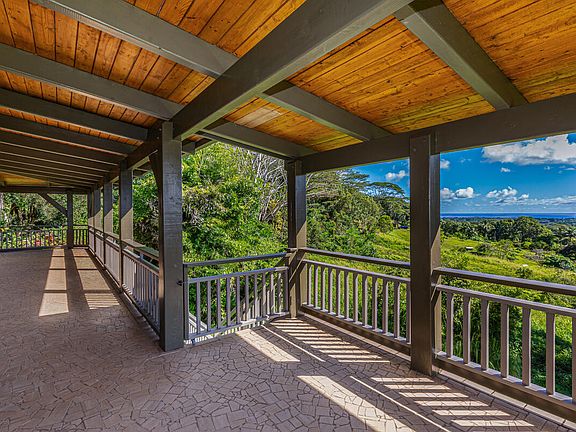 As you wind up the long, private driveway, you’ll be greeted by an idyllic setting with a beautifully manicured front yard and the serene backdrop of State land at the rear of the property. The tri-level home is designed to take full advantage of the stunning surroundings, with breathtaking views from every window. Experience the awe-inspiring sunrises over the ocean or marvel at the dramatic mountain vistas as the Tradewinds carry clouds and rain through the valleys. Positioned at the base of Makaleha Mountain, you can enjoy daily displays of cascading waterfalls and rainbows, making this property truly one-of-a-kind.
