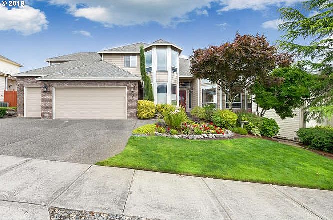 This beautiful home boasts a ton of amenities with MT HOOD view. Main level with den, LR, DR, FR that open to the kitchen with hardwoods, granite slab, stainless appliances tons of cabinets, Upstairs with 4 bedrooms, Master with remodeled en-suite, heated tile floors, gorgeous new tiled shower, w/in closet. Shoe closet. Downstairs with huge room, for media room, bonus, exercise, New A/C, Furnace,Gorgeous landscaping, & water feature. [Home Energy Score = 7. HES Report at https://rpt.greenbuildingregistry.com/hes/OR10095601]