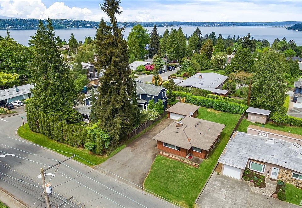 First Time Ever On the Market mid-century style custom built 1951. Light filled rambler w basement/storage space & 2 car garage w long driveway for extra parking. Features fireside livingrm w wood burning f/p adjoining sun-filled diningrm. 2 wonderful bedrms w dbl closets. Level yard, vinyl windows, oak hardwood (need refinishing) under carpet. Award winning Mercer Island schools, mins to I-90, close to Luther Burbank Park. Potential development. Around homes of greater value & new construction!