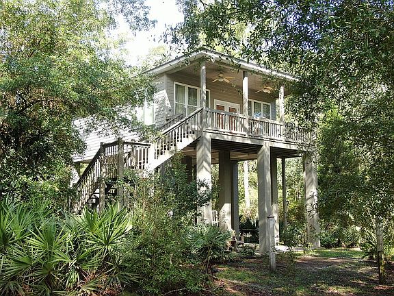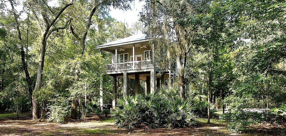 Watch the rolling river from your front porch on the storied Suwannee River! Located in a private gated community with no public access, this peaceful 4.2 acre double lot retreat is surrounded by beautiful hardwoods and palmettos with ample opportunities for fishing, boating, or paddling. The property also includes an RV pad and hook-up for family and friends. Built in 2009 on 17 foot pillars, the home owners recently installed a new water filtration system as well as brand new stairs and front porch. The community maintains beautifully groomed sand roads, great for quiet evening walks. In addition to the private, code-only entrance to the community, the property has a gated driveway. The interior of the house features an open floor plan, 1 BR / 1 BA with a double walk-in shower, granite countertops, quality appliances, and beautiful cabinets. The cozy living room and front porch are ideal for relaxing in the midst of nature. The home is located within 15 minutes of I-75, and the entrance to the community is across the road from Gibson Park which provides access to a boat ramp. The home is also a short drive from the Spirit of the Suwannee Music Park, the Lower Alapaha Conservation Area, Madison Blue Spring, and the town of Live Oak for shopping and restaurants. Pictures don’t do this place justice - you must see it for yourself! The adjacent 2.2 acre lot must be sold with the property and can be negotiated separately. Buying agents will receive 3%.