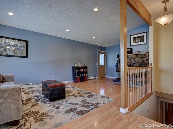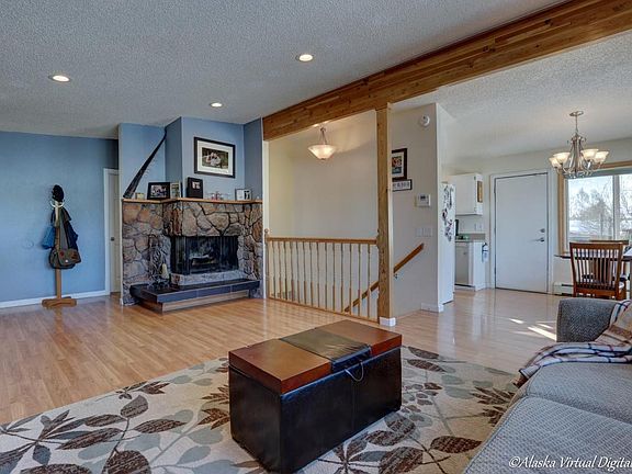 The perfect home in a wonderful south Anchorage neighborhood. Open floor plan great for entertaining featuring gorgeous floors, lovely FP w/raised hearth, big master w/his & her walk-in closets, beautiful kitchen w/white cupboards, matching appliances, bay sink window for herb garden & lots of cabinets. Wraparound south facing deck Plenty of off street paved parking for guests, RV's & toys
