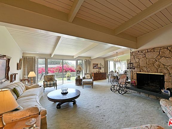 First time ever on the market for this Outpost Estates custom built mid-century. With classic styling comprising of a modern rectilinear pavilion, vaulted wood-paneled beamed ceilings and floating walls, the clean spare lines and open floorplan remain remarkably relevant. Located at the end of cul-de-sac, the wonderfully private property consists of two bedrooms, 2 baths and a study. The spacious living room boasts a huge stone fireplace with floating hearth and walls of glass that open to the sunny garden and patios, offering exquisite views of the surrounding landscape and city below. Trust sale - no court confirmation.