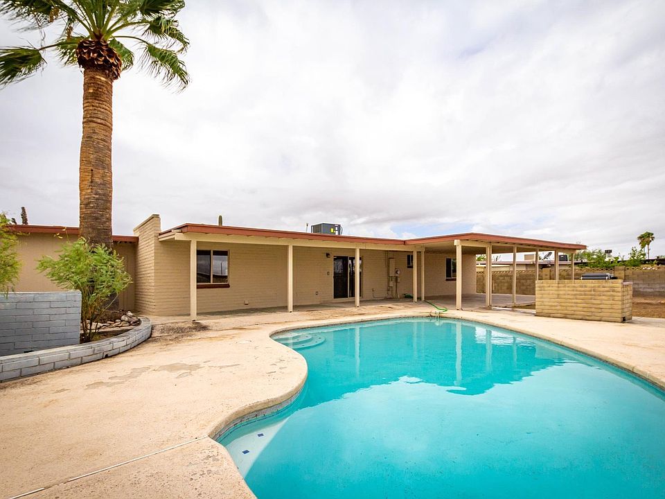 Seller will accept or counter offers from $273,900. - $278,900. Beautifully remodeled! This three bdrm with 2 baths is waiting for you. Enjoy the cool nights; nestled next to the fireplace in the living room, spacious dining area- Brand new kitchen with cabinets and granite counters. New appliances too. Remodeled bathrooms, new carpet, paint, tile flooring in the common areas. two car carports. Back yard has a blocked wall with a pool and built in grill . Large covered deck to sit and enjoy this lovely home.