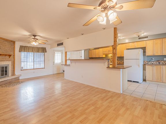 Charming 3 bed/2 bath single story home offers GAS HEATING, WOOD LAMINATE FLOORING and tile throughout (no carpet or popcorn), dual cooling, FIREPLACE, UPDATED BATHS with GRANITE COUNTERTOP and tile-surround master shower. OPEN CONCEPT KITCHEN has newer maple cabinets, recessed lights w/tons of storage. Large fenced in back yard AND WORKSHOP W/BONUS ROOM! NO HOA and room for RV. Agent is related to seller.