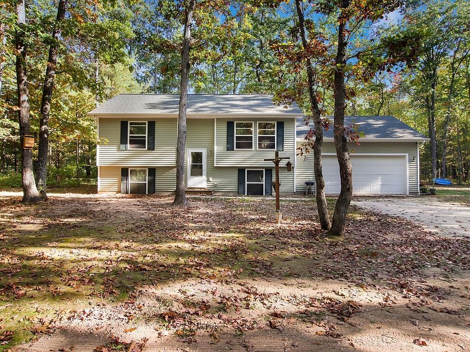 Now offering this tidy bi-level on a beautifully wooded 2.5-acre parcel in Interlochen. The main level has an open concept living room, dining room and kitchen, with an abundance of natural light. There’s a deck off the kitchen, perfect for grilling or enjoying the peaceful view. Two bedrooms with large windows and a full bathroom complete the main level. The lower level boasts the third bedroom, new bath with shower and an unfinished space perfect for a private master suite or family room. A large laundry room with mechanicals completes the lower level. The spacious 2 car attached garage has plenty of extra storage. The home has central air and a newer forced air furnace in 2015. There's so much potential to make this your dream home. Schedule your tour today!