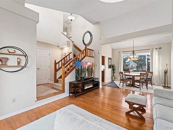 This beautifully maintained two-story home offers modern living with charm and style. The newly finished basement, featuring contemporary finishes, walks out to a private, oversized yard with mature landscaping, including apple and cherry trees. Enjoy the park-like setting with a unique wooden gazebo, perfect for relaxation or entertaining. Unwind on the back deck while taking in the mountain views. Situated in a peaceful cul-de-sac and adjacent to Timberline Park, the home is a true retreat. Highlights include granite countertops, new appliances, fresh flooring, storm doors, and updated lighting. With recent upgrades like a new sliding glass door, stair railing, and a radon mitigation system, this Highlands Ranch gem is move-in ready!