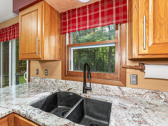 Experience country living in this spacious four-bedroom home, conveniently located with easy access to Highway 8. Tucked away in a quiet subdivision on a 1.46-acre lot, this two-story home features beautiful landscaping, perennial gardens, a blacktop driveway and a private backyard with a sun deck. The kitchen includes oak cabinets, granite countertops, and an island that serves as an extra prep area or a spot for quick meals. The main floor offers a formal dining room, a large entryway, two living rooms with electric fireplaces, a laundry room, and a half bath. Upstairs, you'll find three bedrooms, an updated full bathroom, and a master bedroom suite with a modern, renovated bathroom. This home also has a full unfinished basement, a wrap-around driveway, a shed, and a three-car attached garage.
