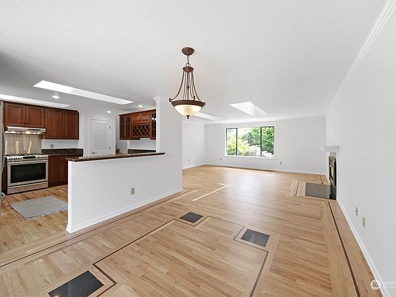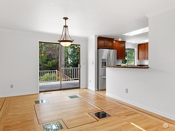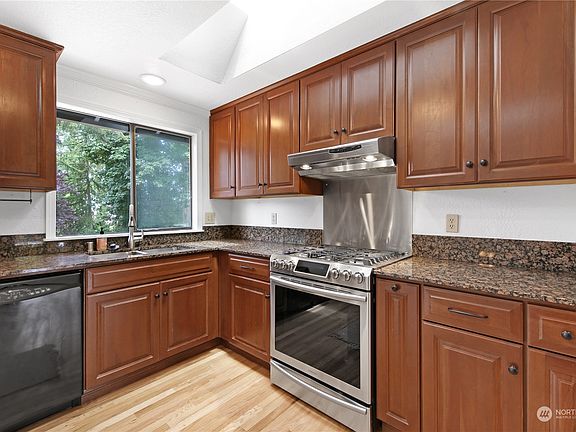 This home has been waiting for you! Very inviting Tri-level surrounded by mature landscaping 15K+ sf lot. New Paint in & out, beautiful REAL Hardwood flrs on main level, Living rm has gas fireplace,beautiful mantel, opening skylights, Spacious dining w/slider to massive deck! Kitchen boasts an abundance of storage, Beautiful Cherry stained cabinets, SS gas Range,Granite counters. Siding door from lower level family/rec/media room(another gas fireplace) to huge patio and stairs to multi-level decks. Baths have been just recently updated, new vanities, tile,most flooring. Gorgeous back yard, Garden shed, Fully fenced, parking for 2 RV's (dedicated outlet) Quiet Cul-de-sac location. Mukilteo Schools. Move in ready! Easy commute Boeing