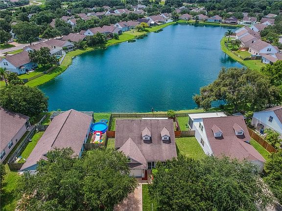 THIS WATERFRONT HOME IS IMMACULATELY KEPT AND MOVE IN READY! 4 bedroom/2.5 bathroom two-story home in Fosters Creek is spacious, open, and bright with serene lake views. Featuring a newly painted interior/exterior, new stainless steel appliances, new carpet in the master and plenty of storage, this 2,086 sq ft home is ready to be called yours. Enter the screened front porch and open main living space with easy flow living room, dining room and kitchen. The Master suite with walk-in closet and bath with both garden tub and separate shower is conveniently on the main level and has picturesque lake views. Utility closet and 1/2 bath complete the first level. Upstairs, a central bonus room-perfect for gaming, study, or exercise- is surrounded by an additional full bathroom and 3 generous sized bedrooms with walk-in closets. Family and pets alike will enjoy the screened in lanai and fenced backyard with captivating lake views to watch the Florida wildlife at play. Close to Buffalo Creek Golf Course, schools, parks, shopping at the Ellenton Outlet Mall and easy access to both I-75 and I-275 for travelling to St. Pete, Tampa, or Sarasota. Call today for a private showing. Be sure to click the virtual tour link for a 3-D walk through experience. Welcome Home!