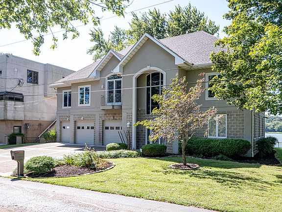 GREAT PRICE and IMMEDIATE POSSESSION on this 2675 square foot two story. First floor has 3 car garage with plenty of storage space, full bath and foyer with elevator or spiral staircase to second floor. Extra-tall ceilings on first floor was built to withstand flooding from the Ohio River and keep water from reaching the second floor. Second floor has foyer with large kitchen that opens to great room with fireplace (all vaulted.) Master with master whirlpool bath with sunroom off master, bedrooms two and three, full bath, half bath, study and laundry. Trex decking goes across back of the house with access from kitchen, great room and master bedroom. and the majority of the rear of the second floor has glass with stunning views of the Ohio River. Below deck has huge patio to accommodate large parties. Docks in need of repair. (Do not walk on.) Stove, refrigerator, washer & dryer to remain. Seller to provide a one-year Home Warranty. Sale includes an additional lot located across the street from the subject property DB 9160 PG 0496 used for additional parking. Per appraiser, one sale and one active listing were found on Beachland Beach Rd with a similar additional lot. These additional lots were packaged with the primary lot and appeared to add additional contributory value of approximately $30,000 - $50,000. (This information can be found on the last page of the appraisal the last paragraph.)