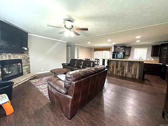 Wonderfully kept home is ready for you and/or your family. The home has just been updated on the interior with paint, new flooring in main living area/dining/kitchen and laundry room. 3 good size bedrooms with spacious closets. Two full baths. Primary bath has separate shower and large soaking tub. Living area is spacious and open to the kitchen and dining. The large mounted tv over the woodburning fireplace will convey. Kitchen has a large island breakfast bar and the refrigerator will stay. The large level half-acre corner lot includes a privacy fenced back yard and a concrete inground storm shelter. Just a short drive into Little Rock. Great opportunity for a first home! AGENTS SEE REMARKS!