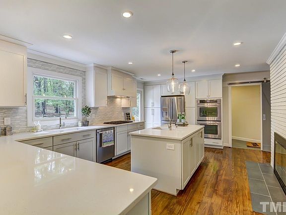 Motivated Seller! Over $200K in recent upgrades!! Completely remodeled ranch w/ walk out bsmt in prime N Raleigh locale. 5 bedrms 3 full updated baths. Refinished hwds thruout most of 1st flr. New carpet. New light fixtures. Fabulous kitchenoffers quartz tops, center island, s/s Jenn-Aire apps & custom cabs. Master w/ spa like bath w/ new double vanity, soaking tub & sep oversized tile shower. Lower level has bonus rm w/ wetbar, 2 bedrms & full bath. Screen porch + deck. Sparkling pool w/ private b-yard.