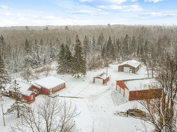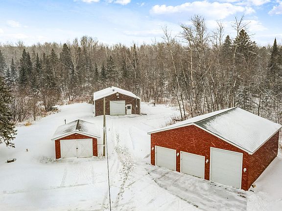 Great opportunity for one-level living set on 12 wooded acres! Be greeted by a 29’x11’ heated porch; this wide-open space has a fun red-and-white color scheme and welcoming fireplace. The living room, dining area, and kitchen are combined for an open layout. Living room has wood-beamed ceilings, quality fabric-covered walls, cozy wood stove that is able to heat entire home. The kitchen has a walk-in pantry, efficient layout for meal prep, and newer appliances inc. a gas stove. The dining room has access to composite deck where you can enjoy coffee, grill dinner, view the wildlife in the rock fountain pond, or relax in the hot tub. A bonus room, currently used for winemaking, can be an extra pantry or office space. The 3 bedrooms are conveniently located near an updated 10’x7’ full bathroom and laundry room. Home has tankless on-demand water heater, steel roof, and central air. UPDATES: Walsh patio door, Walsh windows throughout, composite deck/railings, Walsh vinyl siding. OUTSTANDING OUTBUILDINGS: *36’x40’ GARAGE: recently built w/12'8" high ceilings, 3-stall w/loft, separate electric, and seamed-slab foundation w/curbs, w/a 12’x35’ concrete slab next to garage; could be used to park RV or as a foundation for an addt'l outbuilding. *30’x50’ POLE BUILDING: concrete and dirt foundation, huge loft, sliding door/main door, trolley beam, work area, 200 AMPs, and room to store boats/tractors. *15’x19’ SHED: heater unit is present, insulated, on slab, w/lean-to on back of shed. Outside, discover small creeks, apple/crabapple trees, and an abundance of wildlife. Location allows for easy commute to Duluth/Superior and warmer weather away from the lake. Throughout property, it is evident every inch of the home, land, and outbuildings have been loved and cared for; it is time for a new owner, will you be the one lucky enough to call this house your new home?