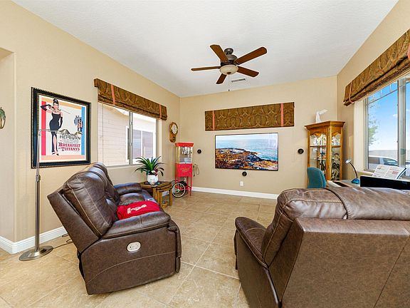 Amazing StoneRidge Mountain & Golf View Home! Upgraded Throughout! Spacious Single Level Home with 2789 SqFt, 3 BD+ Office + Lrg Bonus-Craft Rm/2 Ba/2 Car Garage. Open Granite Kitchen w/Stainless Appliances includes Double Oven, Refrigerator, Freezer, Ice Maker + Water Dispenser, Tiled Backsplash, Blond Hardwood Cabinetry, Slide Out Shelves, Double Door Pantry, Recessed Lighting + Solar Tube, under Cabinet Lighting, Tile Flooring, Granite Butlers Pantry, Counter Dining & Dining Area with Panoramic Views. Great Room w/Ceiling Fan, Tiled Gas Fireplace, Custom Built-in Cabinetry, Pleated Shades, Tile Flooring, Ceiling Speakers and Beautiful Views! Front Family/Media Room is Great for Movie Entertaining with the Surround Speakers and TV Hookups. (Purchase Pkg outside of Escrow) Nice Sunny