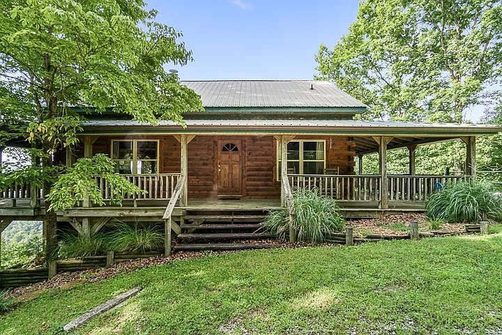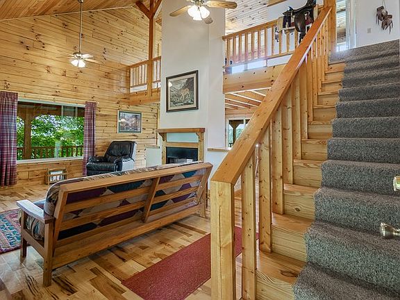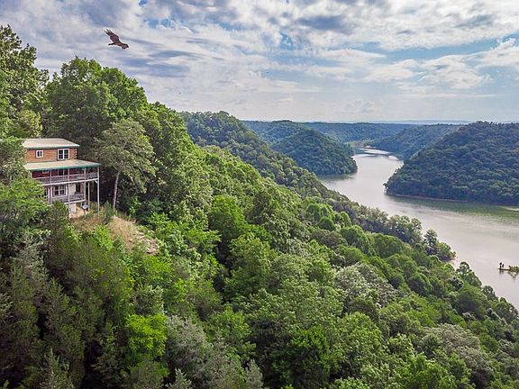 Come experience this unique log cabin on Center Hill Lake. Enjoy the lake and mountain view from the wrap around porch, besides the amazing view the 2736 square foot home with 3 levels of craftsmanship, has primary bedroom and bathroom, laundry room on main level. The upstairs open loft provides additional living space. The lower level is a concrete poured living space with a full bathroom and private porch. The kitchen has been upgraded with brand new refrigerator, microwave, and gas oven for entertainment needs.