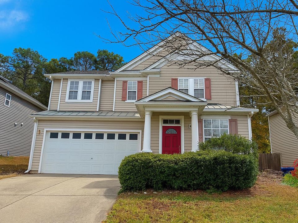 Amazing location and schools! One of the most desired communities in the area. Open concept living with LVP flooring through the entire house - no carpet! Huge kitchen offering lots of counter space and cabinets, plus a nice pantry. Fridge, washer & dryer stay. The second floor boats a large loft for an office or play area plus three spacious bedrooms. The primary suite has a separate tub/shower and big walk in closet. The spacious patio overlooks a flat yard and neighbors privacy fences. Gorgeous view of the woods behind the house with greenway and walking trails close by! Huge concrete patio and garden box. Don't miss the storage and workbench in the garage, the surround sound speakers and the walk in laundry. Less than a half mile to shopping, restaurants and a pharmacy. The roof is approximately 3 years old and HVAC 5 years.