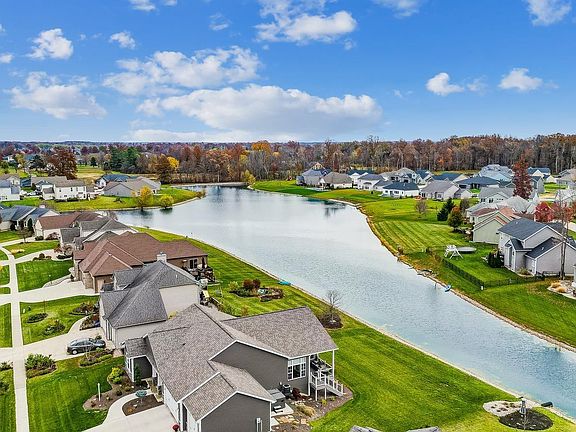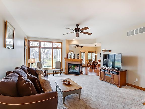 Immaculate 12 year old ranch in Valencia subdivision. Split bedroom plan with both dining room and breakfast nook. The fireplace is positioned between the GR & Hearth Room. Kitchen has recently had a solid surface counter installed with a back splash & you will love the pantry for extra storage!! ALL appliances stay. Large windows add lots of light. Views of the pond from home & screened porch. The landscaping here is awesome! The finished basement has a Family room, Rec area w/ bar & 1/2 bath. This garage is 659 SF with a 4' bump out & a 4 ft extension on the rear for work bench or freezer.