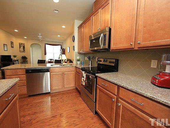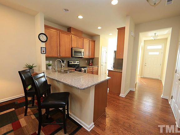 Convenient Brier Creek location for easy access to RTP/shopping! 3 bedroom/2.5 bath townhome with: 1st flr MBR w/coffered ceiling, brick front, 1 car garage (drywalled and painted) + extra parking pad. Eat-in sunny kitchen w/granite counters, tiled backsplash, breakfast bar, counter-depth refrigerator, s.s. appliances. HW floors in common areas. Sweet screened patio! 2nd floor with 2 good-sized bedrooms PLUS bonus room and smaller flex room off of bonus. Walk-in storage. Hurry- this one won't last!