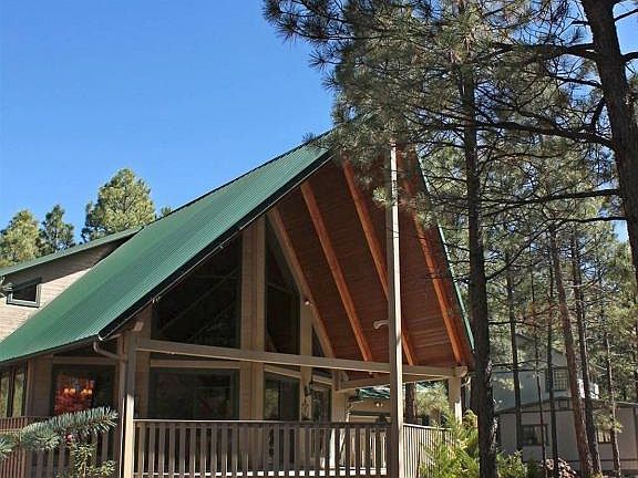 Beautiful Mountain Cabin with a chalet feel. Part of Pinetop Lakes recreation center with pool, spa, tennis, exercise facility. This 2600 plus sq foot home features large covered maint free decks and patio with vaulted T & G on the deck roof,home has a metal roof, 2 x 6 construction, open great room with lots of windows and vaulted T & G ceilings and a fireplace, 3 bedrooms and 2.5 baths plus a large game room/Family room (with half bath) and outside entrance to the patio. 2 hot water heaters. Close to National Forest, hiking, golf and skiing.