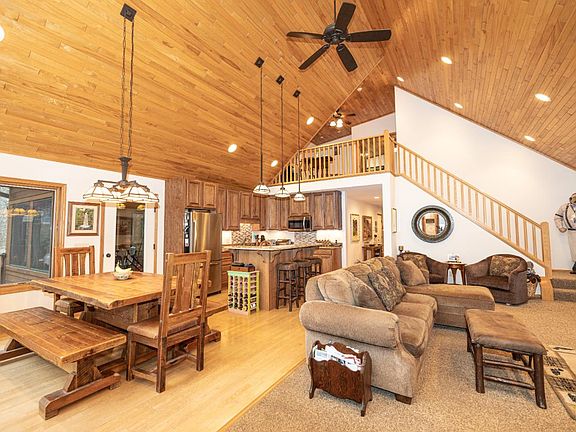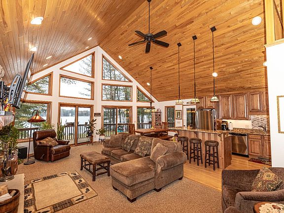 Beautiful 5BR, 4BA home on full rec, 119 acre Hodstradt Lake. As you enter, you'll be captivated by the spacious and inviting open concept living area, featuring a gourmet kitchen with granite countertops and a seamless flow into the dining and living spaces. Large windows boast stunning lake views and the beautifully landscaped grounds extend to the sandy swimming frontage. The primary bedroom is a true retreat, complete with a large ensuite bath and access to the screened porch, where you can enjoy your morning coffee overlooking the lake. Downstairs is designed for entertaining and relaxation. Featuring a wet bar, this fully finished basement provides additional space for family gatherings, sleeping or a cozy movie night with an abundance of natural light. The 3-car attached garage accommodates your vehicles and outdoor gear. Conveniently located close to town and the snowmobile/ATV trails. Come check it out today!