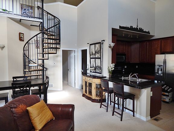 2 bedroom, 2.75 bath, 1460 Sq. Ft. Upper Floor Condo unit with interior loft space accessed by a spiral staircase. Very spacious with 20' vaulted ceilings in main living area, and 10' vaulted ceilings in each bedroom. Gourmet kitchen with granite counters and stainless steel appliances, and granite counters in each bath. Covered deck with two storage rooms. This condo is in the teriffic Cherry Creek 5 School District. Amenities in the complex include pool, hot tub, fitness center, playground, and gathering space.