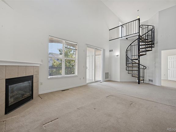 Welcome to this stunning penthouse condo in the sought-after Dove Valley community of Englewood! This unique two-floor unit offers 3 spacious bedrooms and 3 bathrooms, combining style and comfort in a light-filled open layout. Large south facing windows provide abundant sunlight in the winter months. The main floor opens to an inviting living area with high ceilings, a cozy gas fireplace, and sliding glass doors that lead to a large private balcony—perfect for relaxing or entertaining. The kitchen, complete with granite countertops and a breakfast bar, seamlessly flows into the open main living area making it ideal for modern living.