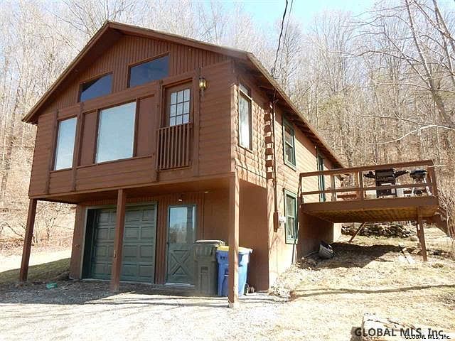 Back off the road this log home sits on 4 acres with garage and workshop in basement