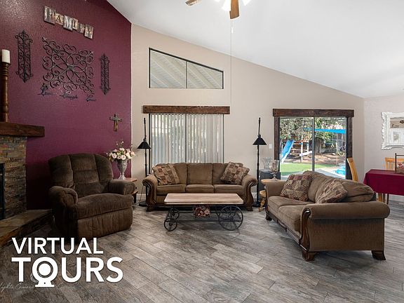 Beautiful 4 bd/ 2 ba home with open floor plan, high ceilings and excellent backyard pool in quiet Bakersfield location. Upon entry, you're welcomed into the fabulous, airy living area -- the space is anchored by a stone fireplace with vaulted ceilings and skylights, which flows into the magnificent kitchen. Whether you're a bonafide gourmand or a culinary hobbyist, this kitchen has something for everyone; it comes equipped with a huge center island, tile backsplash, blue cabinets and double oven. You can find the primary bedroom down the hall, which boasts carpeted floors, abundant natural light, high ceilings and an ensuite bathroom with outdoor access, a dual sink vanity and tiled shower. The cozy secondary bedrooms are also carpeted, and are ideal for repurposing as a home office space or creative studio; they share a common hallway bathroom with dual sinks and a standing shower. If you love entertaining, then the oasis backyard is just what you need -- host guests to the in-ground pool and grill under the covered patio. The perimeter fence ensures your privacy. Nearby: Emerald Cove Park, Links at Riverlakes Ranch Golf Course, Bakersfield College, local shopping and dining, easy access to 99 Fwy and 58 Fwy; short commute to downtown Bakersfield. Buyer to verify all information.