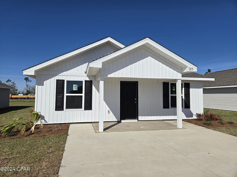 Red Tag Sale! Special incentives for a limited time! Morningside features single story, cottage style homes with highly sought after large yards. This Callaway floor plan is located at 7213 Madison Square Drive. This home has a nice size covered porch perfect for an outdoor seating area. Upon entering this home, you will find an open living space with the kitchen and plenty of room for a dining area. EVP flooring and granite countertops as well as white cabinetry are some of the impeccable interior features. The kitchen is equipped with stainless appliances including a smooth top range, microwave and dishwasher. As you make you way down the hallway to the back of the home you will notice a laundry area for a full-size washer and dryer, two bedrooms with shared bathroom and the primary bedroom. The primary bedroom has a large bathroom with closet and large shower. Morningside is a beautiful new community located in Panama City, off Highway 231. This community is only 15 miles from Tyndall AFB and a short distance to great schools and ample shopping and dining.