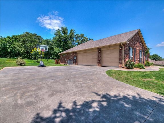 Welcome to open space and beautiful views! This 5 bedroom 2.5 bathroom home on over an acre is ready for it's new owner. The 5th bedroom would be a great space for a study/office. Like new home, built in 2014 by Award Winning Builder- Blue Ribbon Construction. Located in the desirable Choctaw/Nicoma Park School District. The home offers granite counter tops in kitchen & all bathrooms, new flooring, storm shelter in 3rd garage, Bosch appliances, aerobic septic system, full guttering around home, sprinkler system, well=no water bill, floored attic with lots of storage space, and a spacious deck where you can sit and watch the deer run through your backyard. Short commute to Tinker AFB, Boeing, shopping & more. Schedule your showing today and fall in love with your new home!
