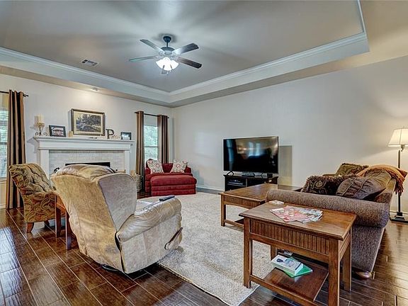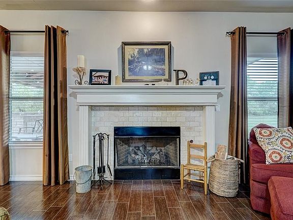 Fabulous, well-built home in Choctaw School District. There are 4 actual bedrooms, three on one side of the home ad they share a large guest bath. The living area has wood-looking tile floors, a gas fireplace and opens to the dining room and kitchen. The kitchen has granite counter-tops, a nice pantry and stainless appliances. Across from the kitchen is another living area. It is currently being used for a playroom. Would make a great home office or game/pool room. A half-bath is outside that room. The owner's suite has windows overlooking the back yard, a large toilet room with a linen/storage closet enclosed, a jacuzzi tub, glass door shower, double sinks with granite tops and a great closet. The stunning back patio/living space was completed in 2019. Soaring cedar ceilings and beams, a fireplace, television, blue tooth sound system, stovetop, refrigerator and sink. Established garden spot, utility storage bldg with electricity and a water hydrant for watering.