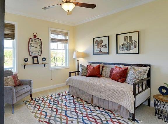 Welcome to The Mayberry, a one-story craftsman-style home built by Schell Brothers in Palmilla at Magnolia Green. In Palmilla, you will find 69 exclusive homesites averaging one-third of an acre, some of the largest in the community. Tucked within the center of Magnolia Green between golf holes #1 and #10, the neighborhood offers the ability to choose a private, golf-course view or a cul-de-sac. Square foot options for The Mayberry range off 2,254 to 5,343, while bed/bath options include up to 6 beds and 6 baths. The Mayberry offers a two-car, attached, direct-entry garage, covered porch, foyer, upscale kitchen with turned bar-style seating and dining space, designated laundry room, and the first-floor owner's suite with walk-in closet and his-and-hers vanity. Side wing off the great room includes bedroom 2 and 3 with shared bath. Just outside the great room rests a myriad of customizable outdoor living options. The option to add a second floor boasts an additional bonus bedroom with bath and unfinished storage space. Schell Brothers homes utilize green features, such as Energy Star appliances and the gas tankless hot water heater. Neighborhood limitied-time incentive is $20,000.