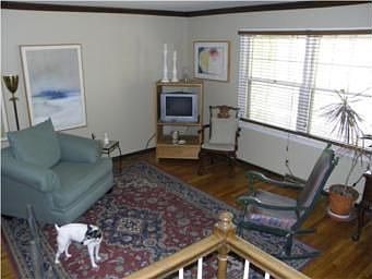 BROOKSIDE CHARM IN THIS OVERLAND PARK 2-STORY! Treed, Parklike, Fenced Backard. Covered Front Porch with Stone Columns. Hardwoods throughout except New Carpet in the Spacious 1st Floor Family Room and New Ceramic Tile in the Kitchen. Hearth Room features Stone Fireplace and opens to Kitchen with White Cabinetry and Ceiling Fan. Large Living Room opens to Formal Dining Room with Bayed Window and Crown Molding. Updated Bathrooms! Spacious Master Bedroom with Private Bath. 2nd Bedroom has a Bonus Room that could be Play Area, Walk-in Closet, or Storage Room! Large Level Backyard!
