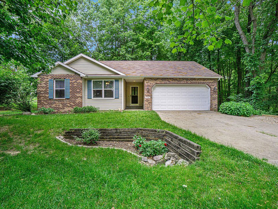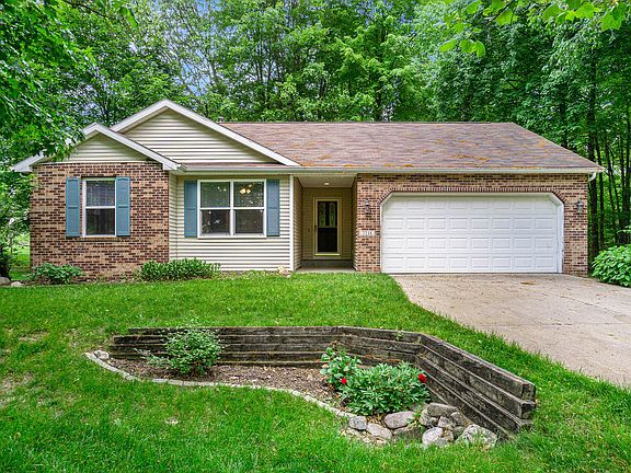This beautiful ranch-style home is Kalamazoo Promise qualified and perfectly situated less than 5 minutes from US 131 and I-94. Despite its convenient location, it's tucked away in a quiet, wooded setting, providing a serene escape. One of the largest backyards in the neighborhood offers a perfect mix of shade, sunshine, woods, and open grass. Enjoy the expansive deck, which features a lower section designed for a hot tub, complete with an electrical hookup. Inside, you'll find a spacious open floor plan featuring a large kitchen, pantry, ceramic wood plank floors, subway tile backsplash, and custom Washburn Cabinetry. The primary suite boasts a walk-in closet and private bathroom. The finished daylight basement includes a large family room with a gas fireplace, a spare room that could serve as an additional bedroom, and a third bathroom/laundry room with a convenient laundry chute. Additional highlights include a high-end storage shed matching the house and an attached two-car garage.