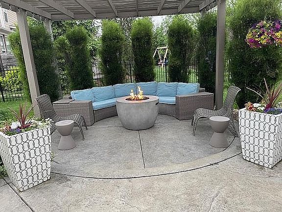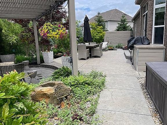 Immaculate 4-bedroom ranch in desirable Emerald Ridge subdivision. This all brick and stone ranch offers a spacious open floor plan. The 10’ kitchen island overlooks the living room with a gas fireplace. 10’ ceilings throughout the main level. Primary retreat includes a double vanity, jetted Jacuzzi tub, frameless shower, large walk-in closet, and tray ceiling in bedroom. Oversized 3 car garage with ample storage. The full-size basement is perfect for entertaining and offers unique stamped concrete floor as well as a carpeted living room area. The basement has a walk-up bar with granite countertops, dishwasher, sink, and refrigerator. The large fourth bedroom is located in the basement with a walk-in closet and is adjacent to a full bathroom. A bourbon room with a black tiled ceiling and multiple TVs is a fun time for any party. This home offers plenty of storage area to organize all of your additional items. Outdoors boasts a private two-tier patio and sidewalk with a pergola and natural stone fountain. The beautiful landscaped yard includes irrigation. New features of the house include roof and gutters (April 2024), carpet in bedrooms (2023), sump pump/backup sump pump (2023), hot water heater (2023), dishwasher (2023), exterior/interior paint (2023). House includes a wired Night Owl camera system (4 cameras).