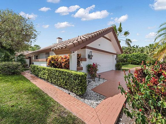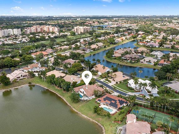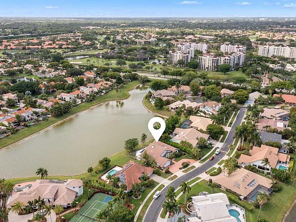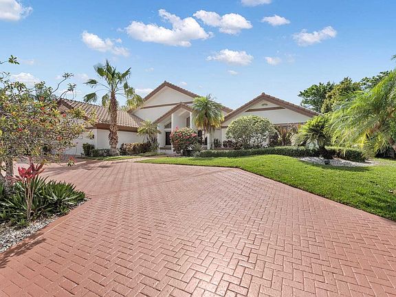 Stunning estate home in prestigious Encantada at Boca Pointe! Step in and enjoy the expansive lake and western exposure views. This sprawling ranch home features 3 bedrooms plus a den and 3 full baths. The gorgeous pool and patio area were recently refinished and have custom waterfall and lighting features. The home has high end marble floors in main living areas. Kitchen and baths were all redone. Perfect house for entertaining with large bar area and cozy fireplace. Kitchen has tons of storage, granite counters and replaced appliances. Other features include central vacuum system, accordion hurricane shutters throughout, 2 zones A/C, extra large circular driveway, tons of closet space, replaced alarm system, and so much more! Don't miss this one!