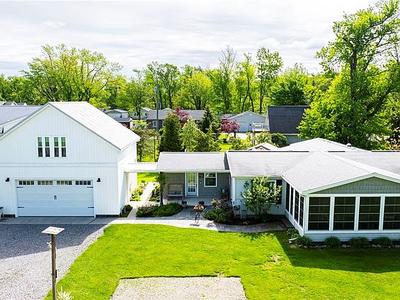 Begin your tour through the enclosed sun porch (built in 2015) and is truly a serene spot to enjoy your morning coffee or you can unwind while watching vibrant sunsets over the lake. Inside, the home opens to a bright dining room that flows seamlessly into the remodeled kitchen, featuring KraftMaid cabinetry, a stylish backsplash, and updated appliances. Step down into the spacious living room, a stunning addition completed in 2020, boasting soaring ceilings and abundant natural light, perfect for gatherings or cozy nights in. You'll find two spacious bedrooms with closets, an updated(2024) primary bathroom, and a former bedroom that is now used an office. The mudroom addition features a spacious laundry area, bar, and provides practical storage for everyday convenience. This home is equipped with all updated windows, ensuring energy efficiency and enhanced comfort throughout.