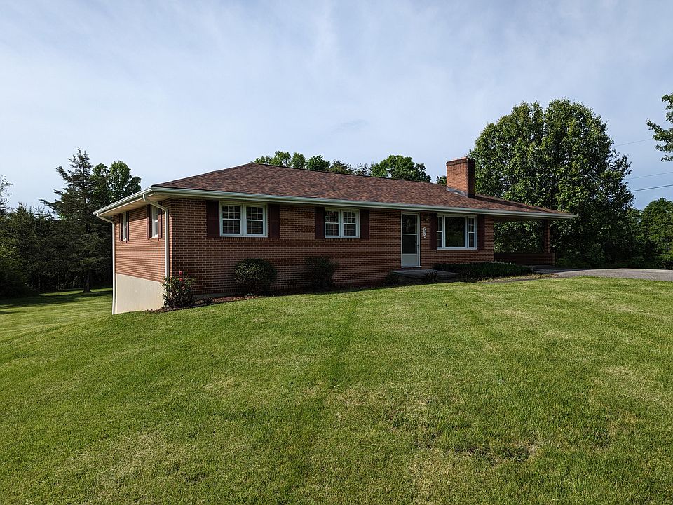 Brick ranch with carport and full walkout basement located just outside of the limits of Rocky Mount. New well to be installed by owner as home is currently on a shared spring. Updates include: new gutters May 2023, heat pump 2018, roof 09/2019, new toilet and kitchen light 2022, and water heater 2014, air vents cleaned January, 2023. Replacement windows and wood flooring under carpet in bedrooms. Convenient to Waid Recreation Park and nice level back yard. Plenty of storage with full walkout basement and garage under carport. Unfinished basement has second full bath and second fireplace. Septic pumped within last 5 years. Sq. footage, year built, taxes, and acreage based on county records.