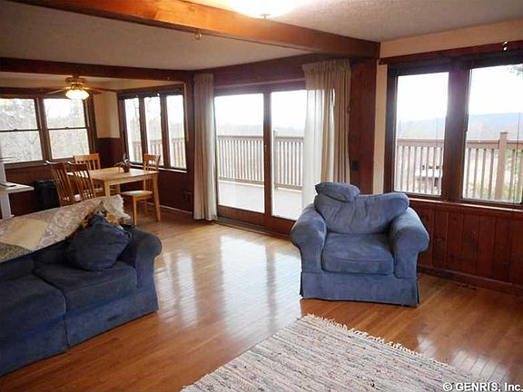 WOW! A Gorgeous,private,9.5 acre site with a beautiful long range view. The house is open and bright, 2 large bedrooms up, walkout lower level with daylight windows has a dry walled room which could easily be made into a 3rd bedroom and a functioning 2nd full bath which needs finishing. New tear off roof 2013, small barn, excellent hunting. Septic and radon tests were just done. 2 tax accounts # ,all information is a combination of both . UNBEATABLE!