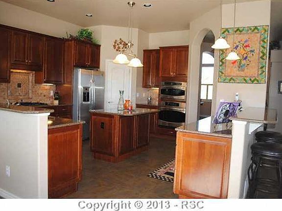 BEAUTIFUL STUCCO RANCHER W/FANTASTIC PIKES PEAK & MOUNTAIN VIEWS FROM THE CUSTOM COMPOSITE DECK W/CUSTOM LITE PKG.STAMPED CONCRETE & GARDENS.CUSTOM 16" TILE ENTRY BRINGS YOU INTO & THRUOUT THE KITCHEN AREA TO GREAT ROOM LIVING ROOM W/MANY BUILT INS.QUARTZ GOURMET EAT IN KITCHEN W/GAS RANGE & UPGRADED PULLOUT CABINETS.SPACIOUS MASTER SUITE W/ CUSTOM TILED BATH PLUS BONUS BED SUITE IN FULLY FINISHED GARDEN LEVEL BSMT.TILE ACCENTS IN ALL BATHS,WALK IN CLOSETS,MANLY GARAGE PLUS TONS MORE DON'T WAIT FOR NEW THIS IS BETTER DL.