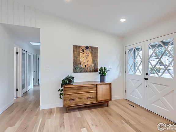 Welcome home to this spacious 5 bed/3 bath 1960's ranch on more than a quarter acre! Gorgeous blend of modern and mid-century style. Stunning open kitchen/ livingroom /diningroom with two tone modern cabinetry, quartz countertops, and white oak floors. Featuring original 1960's double-sided brick fireplace.Main floor offers 3 bed/2 bath layout, laundry room, and mud room. Raised decks (with new trex decking) off main living space and primary bedroom. Plenty of parking with oversized attached garage and circle drive.Spacious finished walkout basement featuring large family room, wood burning stove, 2 bedrooms (1 with egress), bathroom, and ample storage.Screened in side porch offers more space to enjoy the great Colorado weather. Fully fenced back yard. Convenient location close to Boulder and Longmont with miles of biking/hiking trails just outside the door.New roof and solar panels installed 2018.