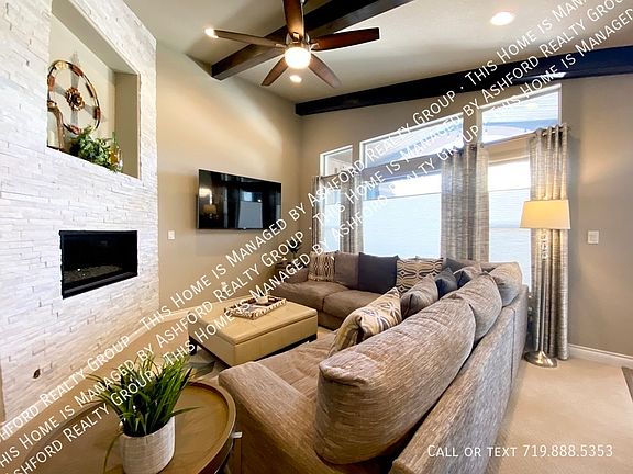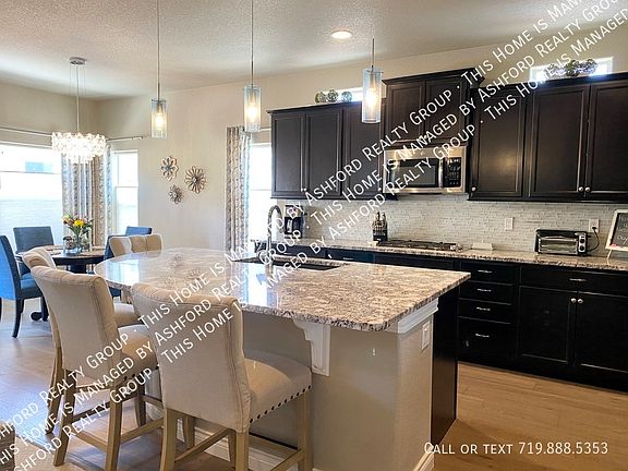 Stunning 4 bedroom home in popular Banning Lewis Ranch. This home has amazing upgrades including wood floors throughout the main level, spacious, gourmet kitchen with stainless appliances, gas range and double ovens. Designed cabinets, granite counter tops and large kitchen island. The kitchen connects to a large family room with vaulted ceilings, custom wood beams and gas fireplace with beautiful tile accents. There are two Master retreats, one on the main level and one in the basement. The main level Master has beautiful barn doors, a 5 piece bath and a huge walk-in closet. There is a large office retreat on the main with french doors and lots of natural light. Downstairs includes a large 26x30 rec room and a wet bar with lots of upgrades. The second Master retreat has lots of space and its own bathroom. Two more spacious bedrooms are in the basement. The 3 car attached garage has extra insulation, a hot and cold tap, 220 volt circuit/30amp service and breaker upgrade. The backyard is completely finished with over-sized covered extended patio, fire pit and waterfall. Perfect for outdoor entertaining, watching the kids play or enjoying the beautiful Colorado sunsets. The home includes solar panels and a security system is available. Enjoy the two pools in Banning Lewis, pickle ball, dog run and tons of hiking trails and pocket parks. A must see!! A minimum of 700 credit score is required! A PROSPECTIVE TENANT HAS THE RIGHT TO PROVIDE TO THE LANDLORD A PORTABLE TENANT SCREENING REPORT, AS DEFINED IN SECTION 38-12-902(2.5), COLORADO REVISED STATUTES; ANDIF A PROSPECTIVE TENANT PROVIDES THE LANDLORD WITH A PORTABLE TENANT SCREENING REPORT, THE LANDLORD IS PROHIBITED FROM: CHARGING THE PROSPECTIVE TENANT A RENTAL APPLICATION FEE; OR CHARGING THE PROSPECTIVE TENANT A FEE FOR THE LANDLORD TO ACCESS OR USE THE PORTABLE TENANT SCREENING REPORT. Disposal Dog Allowed Dogs Only Fence Garage Pets Allowed Range Views Washer/Dryer In Unit