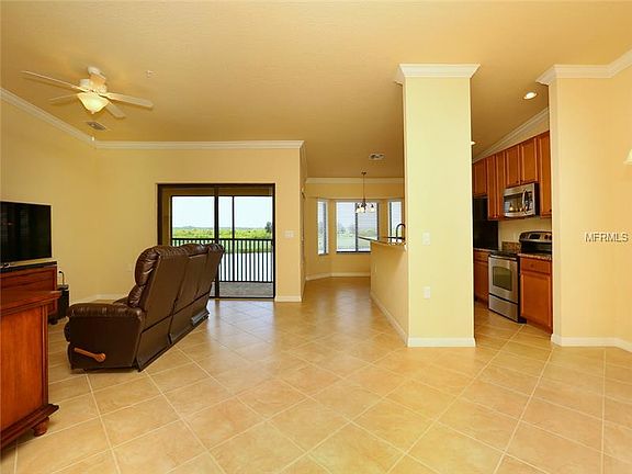 Gorgeous immaculate condo with a million dollar view!! Golfer's Dream Come True!! Equity golf membership is included! Lake views & on the 8TH Fairway of the Estuary Course! Only 1,300 owners are entitled to this golf club membership. Country Club membership is included, as well! PLUS you get to enjoy a practically new, beautiful maintenance- free, Lennar built, award winning Dogwood floor plan condo over looking views of the lake, golf course and the Manatee River in the distance!! New in 2013! Beautiful open great room floor plan with 2 bedrooms, 2 full bathrooms,+ den/office, dining room, screened-in front veranda plus lanai & garage!! Upgrades include granite, crown molding & tile throughout laid on a diagonal! This condo offers you the opportunity for resort style living in River Strand at Heritage Harbour with a 27-Hole Championship Golf Course designed by Arthur Hill.! Tuscan inspired 39,000 sq. ft. clubhouse with wonderful dining! State-Of-The-Art-Fitness Center, 8 Har-Tru Tennis Courts, Resort Style Pools, Billiards, Card Rooms & Fine Dining! FEES INCLUDE; All Your Golf, Use of ALL Amenities, Exterior Maintenance, Roof Replacement Reserves, Repainting, Cable TV, Drinking Water, Hazard Insurance On The Building, Includes Common Area Maintenance/Irrigation, Entry Monuments, Lighthouse and Reserves, Community Parks, & more! Easy access to I-75, Downtown Sarasota and Bradenton. Beaches, Shopping, Dining! Live The Dream In Paradise! Convenient Airports are Sarasota, Tampa, St. Pete, & Orlando.