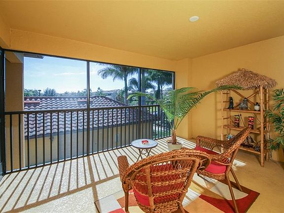 This 2 bedroom 2 bath plus a den condo boasts, great room with vaulted ceiling, crown molding, dry bar, S/S appliances in the kitchen which includes 42"cabinets, granite counters and a sliding door that opens to the spacious front lanai. The bedrooms are separated by a large den that can also serve as sleeping quarters (pocket doors.) One car garage and a pool are steps from the home. Located in River Strand Golf & Country Club you will enjoy all the amenities: 27-hole Arthur Hills designed golf course, 9 Har-Tru clay tennis courts, 8 pickleball courts, 2 resort style pools, 6 satellite pools, 2 fitness centers, yoga room, Clubhouse with restaurant, 24-hour gated commty with security. Annual food and beverage $500 plus membership transfer fee $200.00
