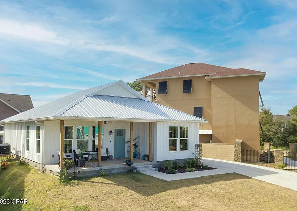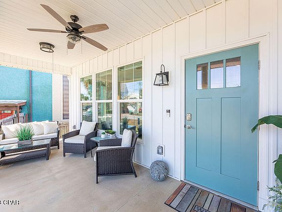 This stunning new build home in Panama City Beach was tastefully built with every detail in mind. You will enjoy water views of the lagoon from your picture perfect front porch. Upon entering the home you will immediately notice all the natural light and continued water views through the large windows. The tastefully designed kitchen boasts granite countertops, custom soft close cabinets, and matching high end stainless steel appliances. The open concept living space along with newly built deck and pergolas make this home ideal for entertaining. Less than half a mile to the Gulf of Mexico and walking distance to local restaurants, this home will also make a phenomenal short term rental. Expansive space in the spray foam insulated attic will give plenty of space to hold owner belongings while away.