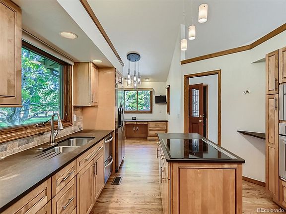 Great opportunity in Sundown Ridge. Not many come on the market in this cozy neck of the woods in Littleton just off Ridge Rd. End unit townhome siding to a large peaceful greenbelt that could be called your own...and you dont have to maintain it. Updated kitchen and primary bath with nice finishing touches and neutral decor. Gourmet kitchen with stainless steel appliances and 48" top notch cabinetry. Cute eat in nook with desk for extra work space. Main floor is open with gleaming hardwoods and eye catching gas fireplace in the family room. Main floor laundry just off the kitchen and the second bedroom. Primary bedroom is spacious with access to the back private back patio. The 5 piece primary bathroom has been updated with a unique flare, plenty of natural light, and heated tile flooring. Extra wide staircase to the finished basement is a nice touch. Large open area for a rec room or movie room with built in shelving and desk for work space or office. Lots of natural light in the basement too. A Large 3rd bedroom in the basement comes equipped with a full bathroom and a walk in closet. The other half of the basement is unfinished with room to expand with an additional rough-in plumbing for another bathroom if needed. Newer furnace, ac, and water heater. All appliances included as well as the washer and dryer. Easy to show.