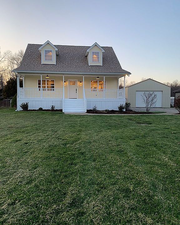 Enjoy sipping your morning coffee on the large, covered front porch, in this serene country setting on 1.15 acres in beautiful Charlestown, Indiana. This stunning 5-bedroom, 2-bath custom-built cape-cod home has been completely renovated and is conveniently located just minutes from HWY 62 and popular River Ridge area! Imagine cooking in the entirely new kitchen with white cabinets, sparkling Brazilian white granite countertops, gorgeous backsplash tile and all new appliances! Love to entertain? This layout was made for hosting friends and family! You'll love the large, open great room with unique, beautiful natural wood vaulted ceilings. This scenic home boasts approximately 2690 square feet of modern farmhouse features, displaying lovely new flooring throughout, brand new tiled main bathroom, tiled master bathroom with luxurious shower, new HVAC, new water heater, and finished basement with open family room and two basement bedrooms. The basement has extra waterproofing and insulation, and, as a custom build, the exterior walls are 2 x 6 with extra heavy insulation. Enjoy evenings with beautiful sunset views on your spacious back deck, kids playing with the dog in the large, fenced-in backyard. Having visitors stay? No problem! The spacious detached 2-car garage/pole barn has a studio apartment with bathroom and extra washer/dryer hookup! The garage area has plenty of space for storage, a man cave, and a workshop. Don’t delay, this home won’t last long on the market!